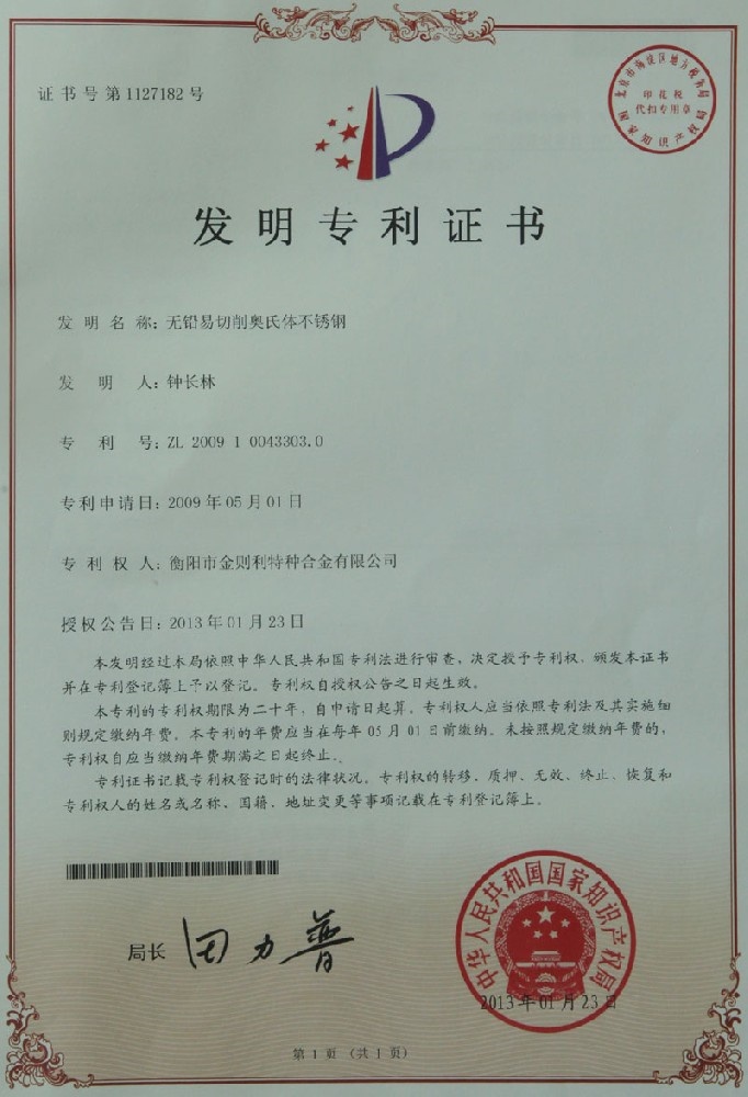 衡陽市金則利特種合金股份有限公司成立于一九九九年十二月,注冊資本人民幣兩千兩百萬元。注冊地址:衡陽市雁峰區白沙洲工業園長塘路2號。公司主營耐蝕軟磁合金,為湖南省高新技術企業。公司自成立以來,即致力于耐蝕軟磁合金的研發。 研制出的JL-31(00Cr13si2Pb)、JL-31B(00Cr13si2)、JL-31BS(00Cr13Si2S)、JL-37B(0Cr17Si2)、JL-37(0Cr17···